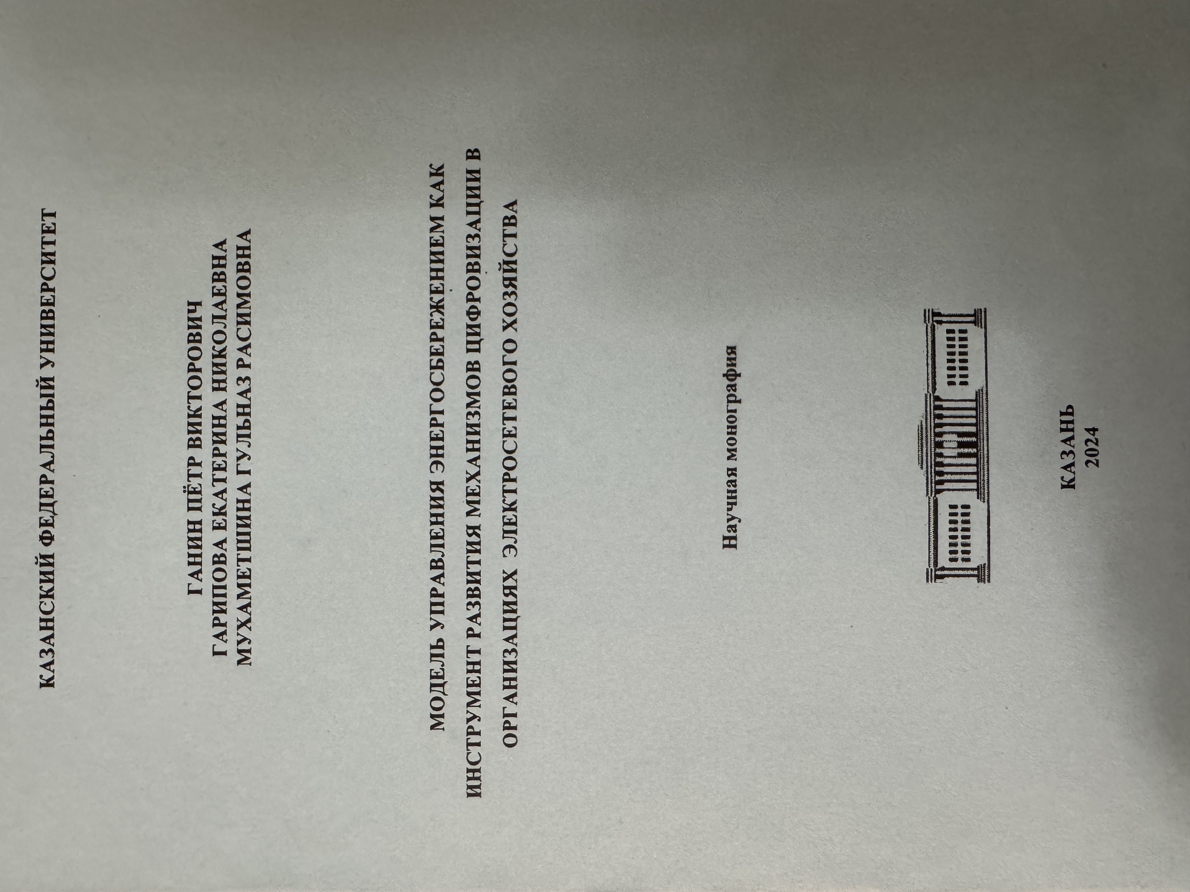 Ганин П.В., Гарипова Е.Н., Мухаметшина Г.Р. Модель управления энергосбережением как инструмент развития механизмов цифровизации в организациях электросетевого хозяйства / П.В. Ганин, Е.Н. Гарипова, Г.Р. Мухаметшина. - Казань: Отечество, 2024. - 136 с. |
