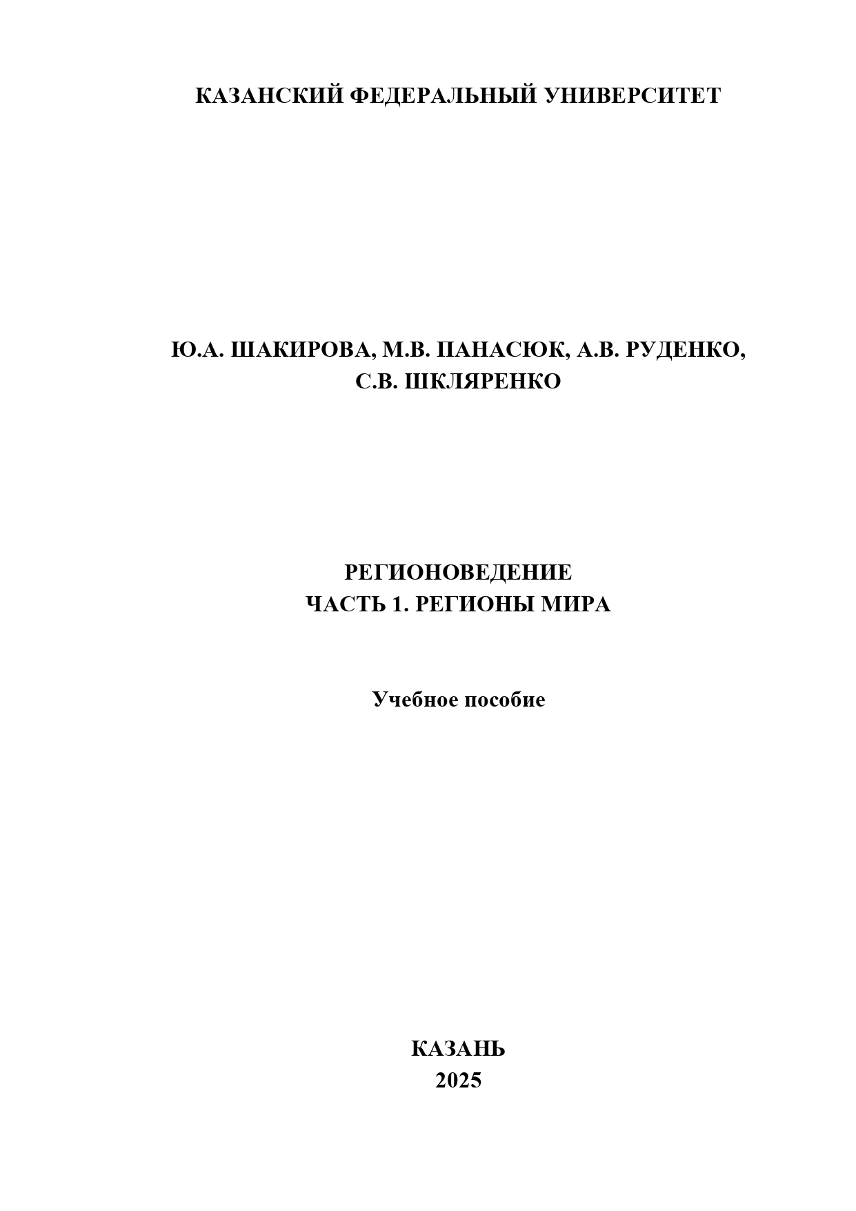 Шакирова Ю.А. Регионоведение. Часть 1. Регионы мира: учебное пособие / Ю.А. Шакирова, М.В. Панасюк, А.В. Руденко, С.В. Шкляренко. – Казань: Казан. ун-т, 2025. – 99 с. |
