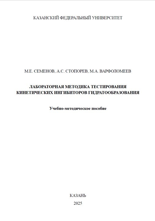 Семенов М.Е. Лабораторная методика тестирования кинетических ингибиторов гидратообразования: учебно-методическое пособие / М.Е. Семенов, А.С. Стопорев, М.А. Варфоломеев. – Казань, 2025. – 29 с. |
